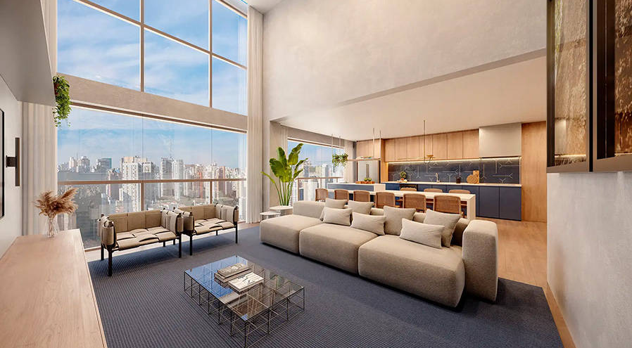 O Eleva Vila Madalena é um empreendimento residencial de alto padrão situado no coração da Vila Madalena, em São Paulo, concebido para oferecer conforto, exclusividade e qualidade de vida. Com uma única torre e 50 unidades, o projeto dispõe de apartamentos de 205 m² com quatro suítes, coberturas duplex de 410 m², ambos com vagas de garagem demarcadas, além de studios compactos de 25 m². O design contemporâneo e sofisticado foi desenvolvido pelos renomados escritórios Perkins&Will, Juliana Abbud e TAGÜ, destacando-se pelo pé-direito duplo de 5,60 metros no living, que proporciona amplitude e iluminação natural aos ambientes.